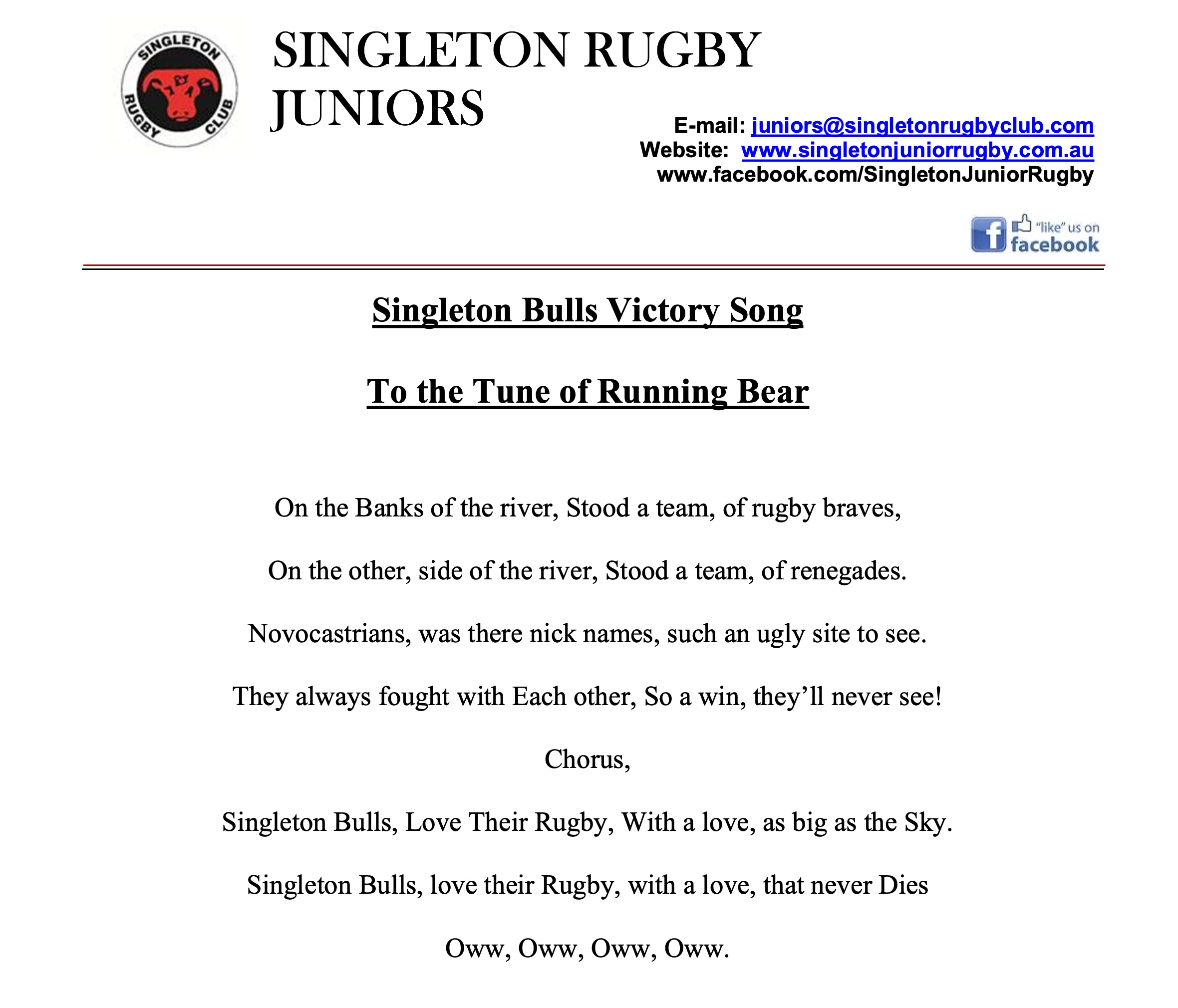Well done Singleton Bulls, keep up the good work.